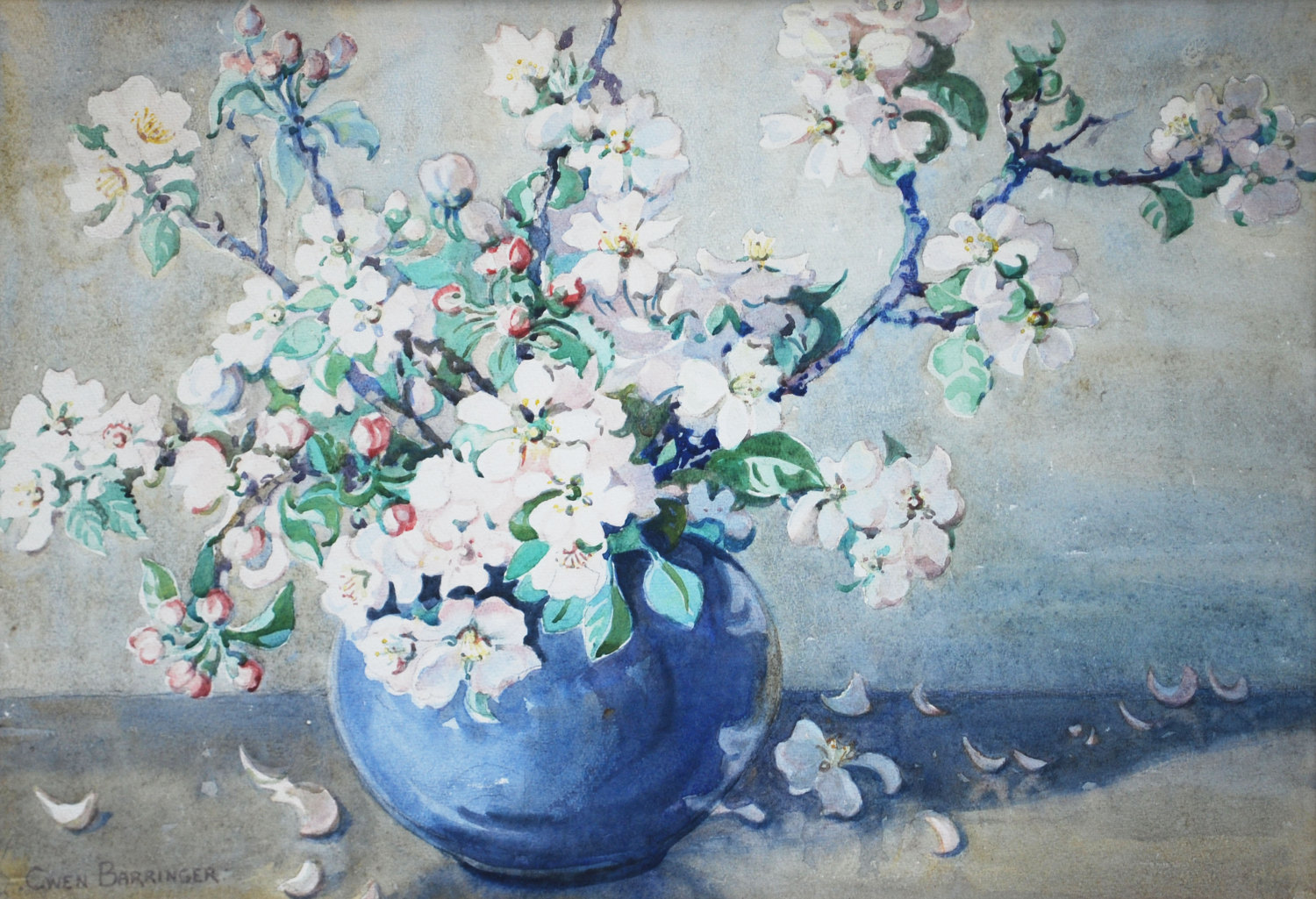 GWEN BARRINGER (1882-1960), BLOSSOMS IN BLUE VASE, WATERCOLOUR, 38 X 54CM
