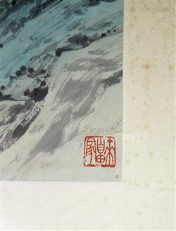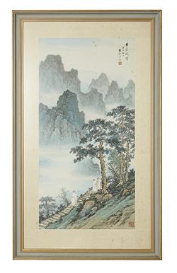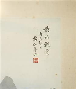 Notes: Yuan Songnian (1895-1966) was a famous landscape painter inspired by masters of the Song and Ming dynasties and incorporated techniques such as ax-cut strokes in his rendering of the mountains to create a dramatic effect.