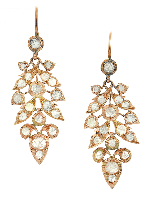 Each articulated drop set with rose cut diamonds, in 18ct rose gold.