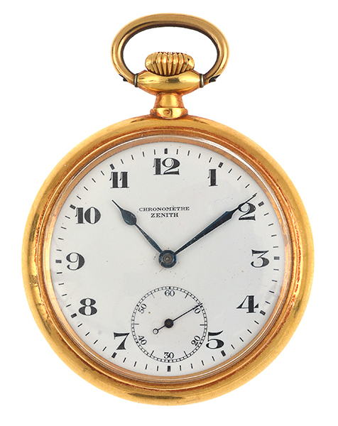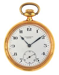 A ZENITH GOLD CHRONOMETER OPEN FACE POCKET WATCH