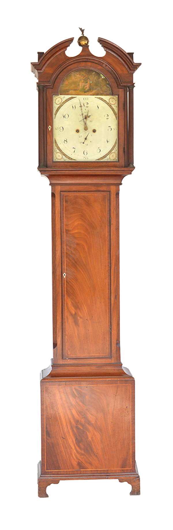 with a painted Arabic numeral dial, and an anchor escapement on one bell, 237cm high