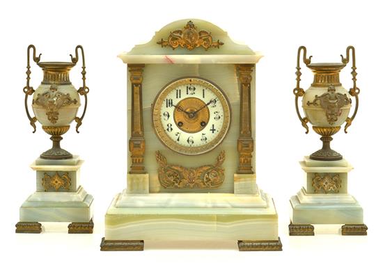 neoclassical in style, with gilt metal mounts, arabic numerals to dial, minor losses, the clock measures 36.5cm high