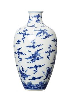 The exterior with all over crane and cloud decoration, 26cm high.