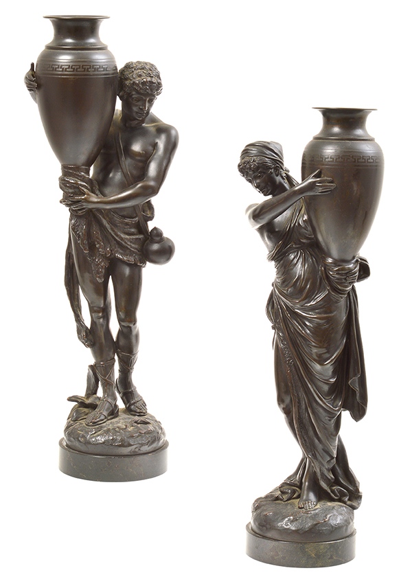 A PAIR OF LATE 19TH CENTURY GERMAN BRONZE WATER CARRIERS