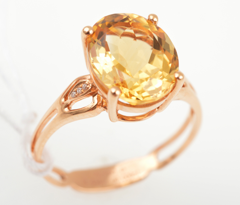 A CITRINE AND DIAMOND RING, IN 18CT GOLD