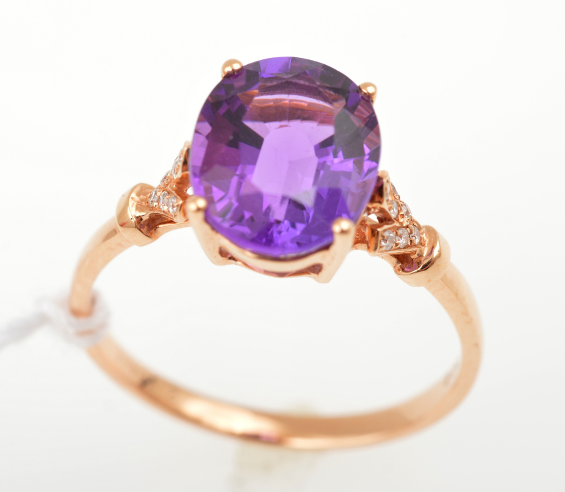 AN AMETHYST AND DIAMOND RING, IN 18CT ROSE GOLD