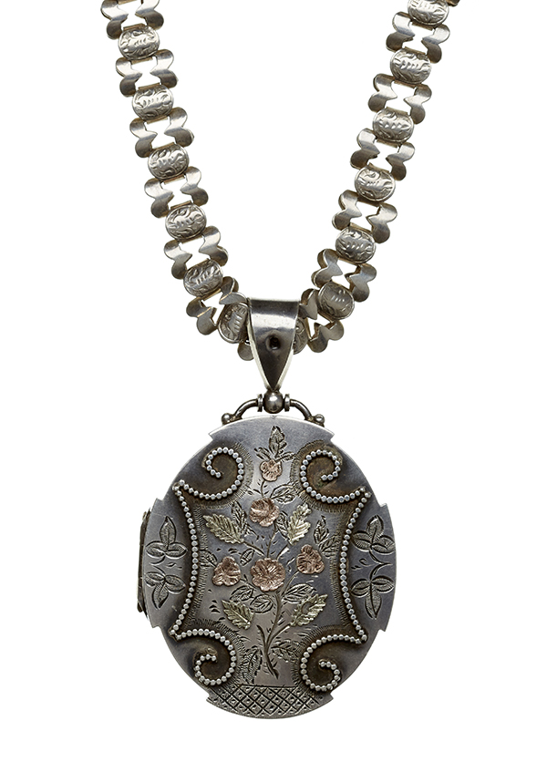 A VICTORIAN STERLING SILVER LOCKET AND COLLAR