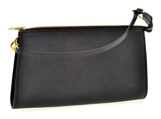 Styled in black Epi leather with black leather handle and gold metal hardware, M52982, AR0071, 24 x 13cm.