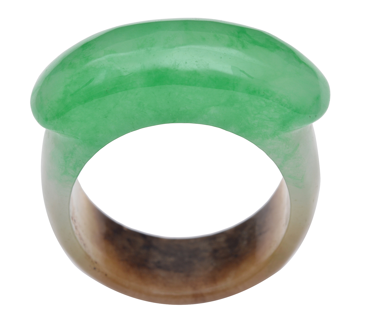 The carved and polished band in hues of green, white and brown, ring size V.