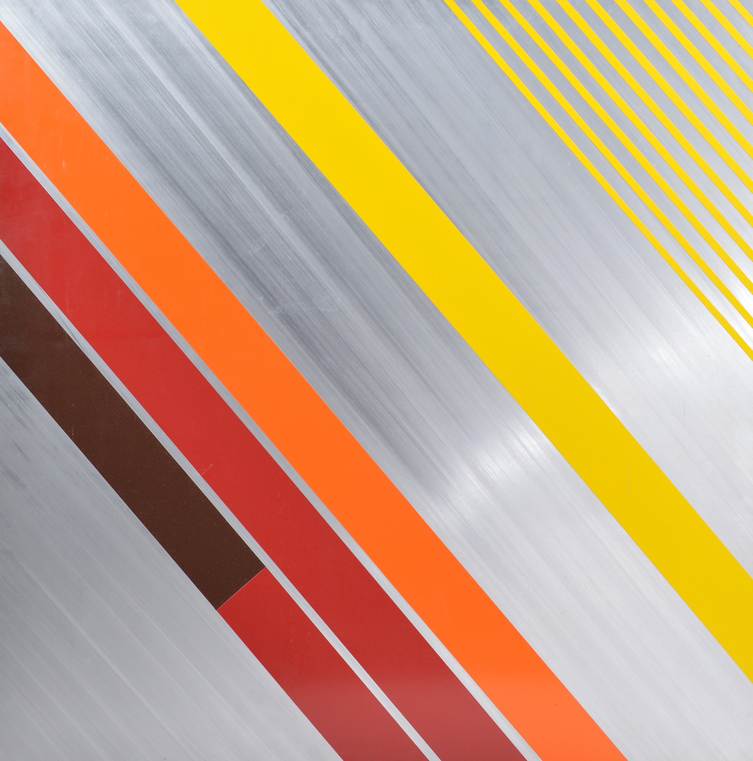 ARTIST UNKNOWN, COLOUR BANDS, MIXED MEDIA ON METAL, 90 X 90CM