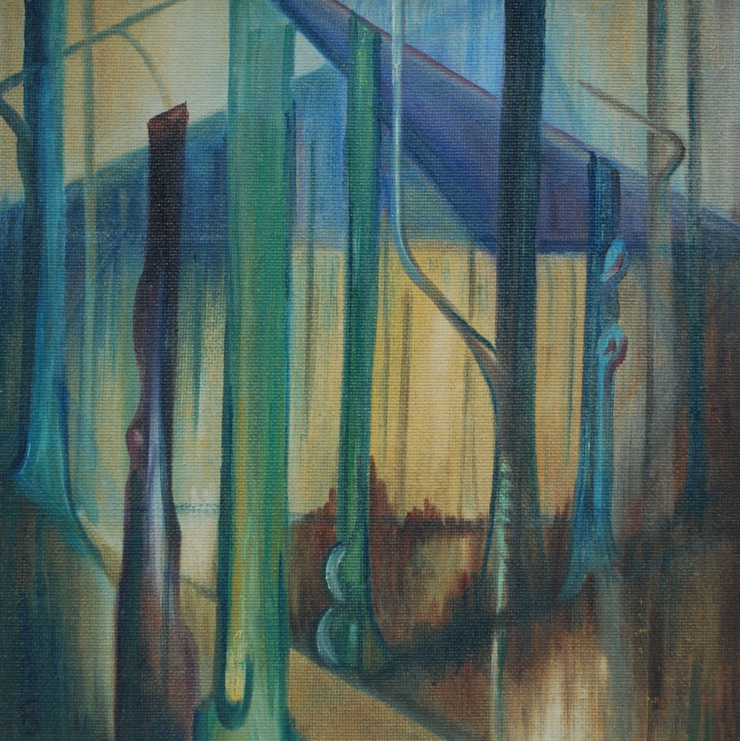 INITIALLED S. H., GREENHOUSE, OIL ON BOARD, 44 X 44CM
