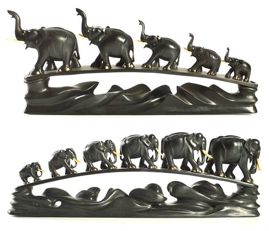TWO 20TH CENTURY EBONY ELEPHANT BRIDGES