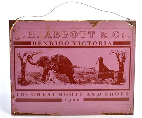 A VINTAGE SIGN: J.H. ABBOTT & CO, 'TOUGHEST BOOTS AND SHOES', BENDIGO VICTORIA