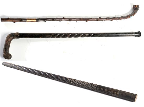 THREE VINTAGE WALKING STICKS INCL, TURNED EBONY