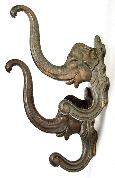 TWO VINTAGE ELEPHANT HEAD CLOTHES HOOKS