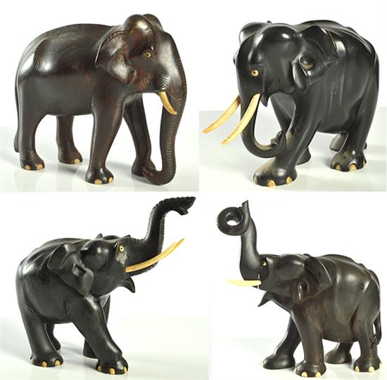 FOUR EBONY ELEPHANTS IN VARYING SIZES