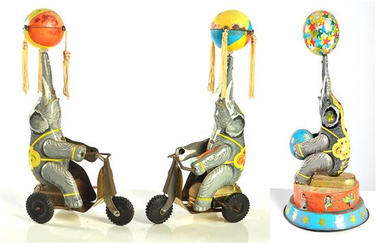 THREE TIN PLATE CIRCUS ELEPHANTS