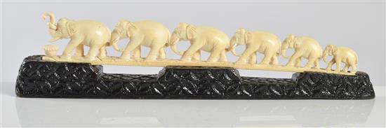 A LATE 19TH CENTURY SIX ELEPHANT IVORY BRIDGE, ON WOODEN BASE