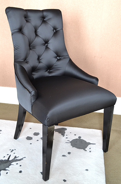 A SATIN UPHOLSTERED EBONISED FRAMED SIDE CHAIR