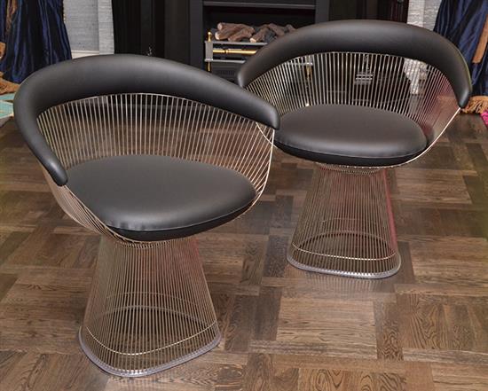 A PAIR OF WARREN PLATNER STYLE LEATHER AND CHROME TUB CHAIRS