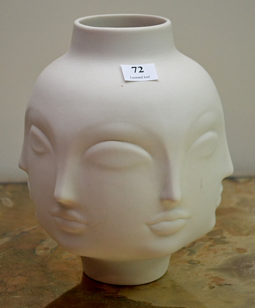 A JONATHAN ADLER WHITE MATT GLAZED CERAMIC FACE VASE, 20.5CM HIGH