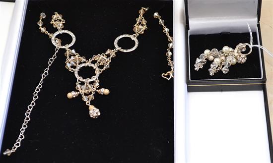 A BESPOKE ALAM JEWELRY SUITE INCL. PENDANT NECKLACE AND EARRINGS, INSET WITH SWAROVSKI CRYSTALS