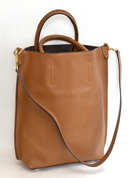 A TOTE BY LOUIS VUITTON 'ARTICLES DE VOYAGE', STYLED IN TAN LEATHER AND GOLD METAL HARDWARE, 34W X 33H X 10D CM