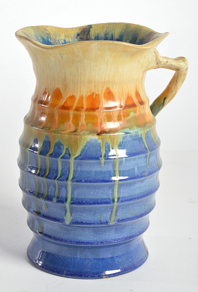 A LARGE REMUED RIBBED AND BRANCH HANDLED VASE
