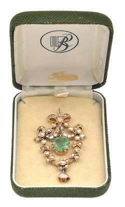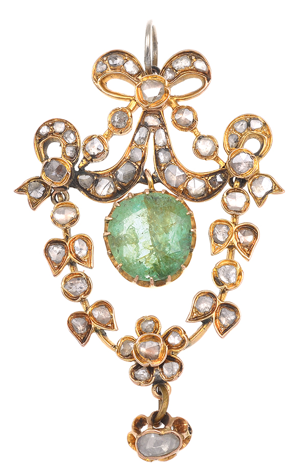 A GEORGIAN DIAMOND AND EMERALD PENDANT