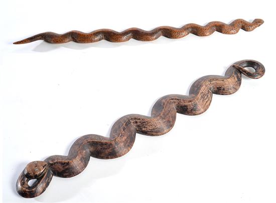 TWO CARVED ABORIGINAL SNAKES, CENTRAL AUSTRALIA, 1950S