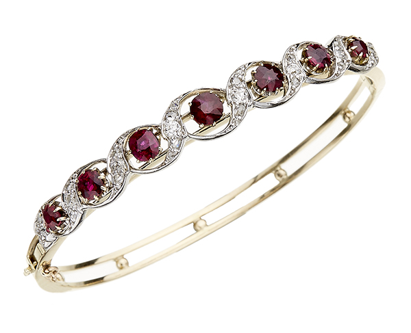 AN ANTIQUE RUBY AND DIAMOND BANGLE