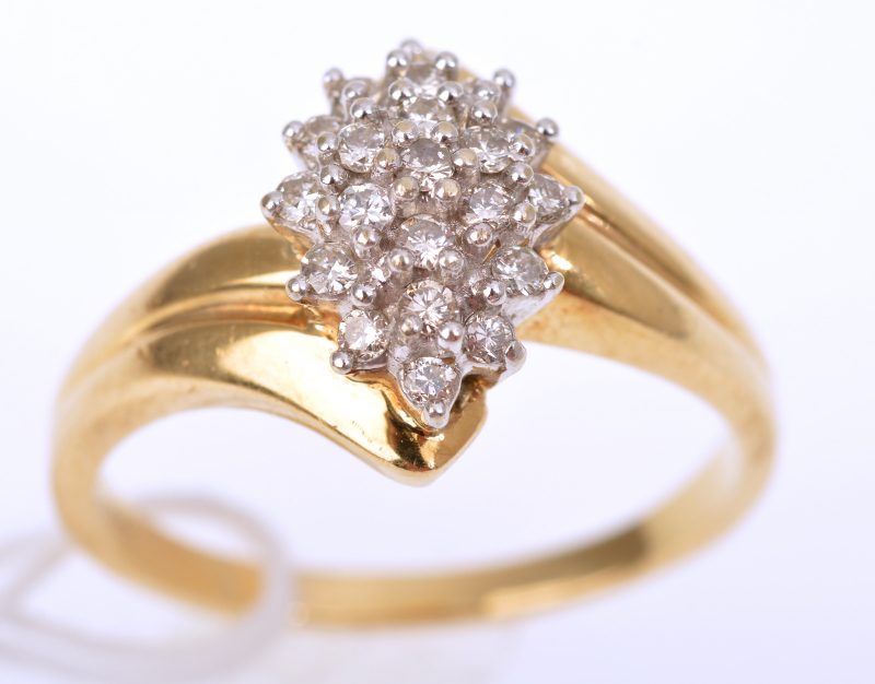A DIAMOND DRESS RING, STAMPED 14CT GOLD