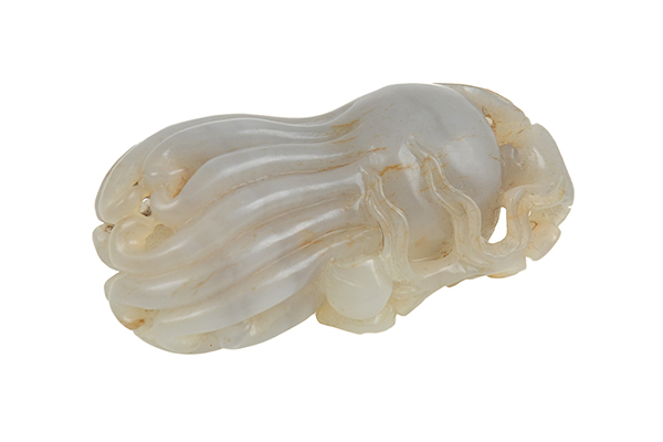 modelled with a branch of peaches, pale in tone with slight russet inclusions, 7cm long