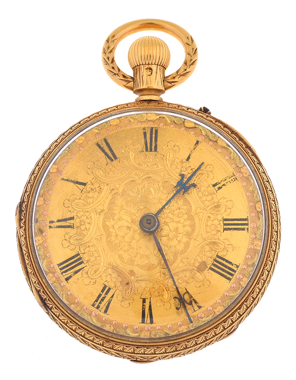 AN ANTIQUE OPEN FACE GOLD POCKET WATCH