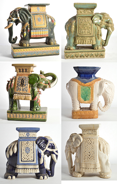SIX IMPRESSIVE PORCELAIN ELEPHANT PEDESTALS AND ONE SMALLER