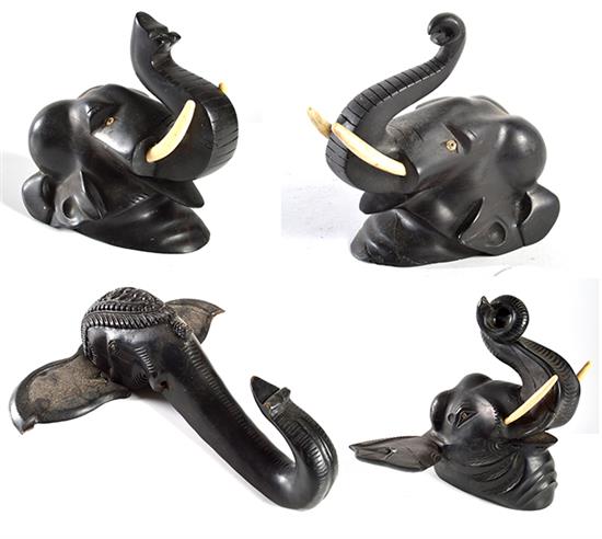 COLLECTION OF EBONY AND IVORY WALL PLAQUES WITH AN ELEPHANT THEME (SOME LOSSES)