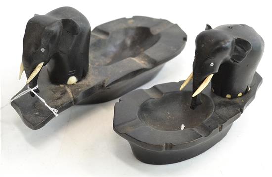 PAIR OF EBONY AND BONE FIGURAL ASHTRAYS (SOME LOSSES)