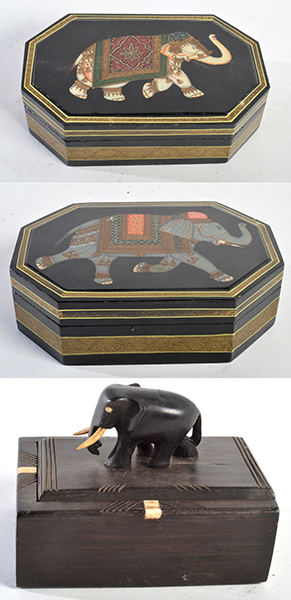 A COLLECTION OF FOUR WOODEN BOXES, INCL. IVORY AND MOTHER OF PEARL INLAY