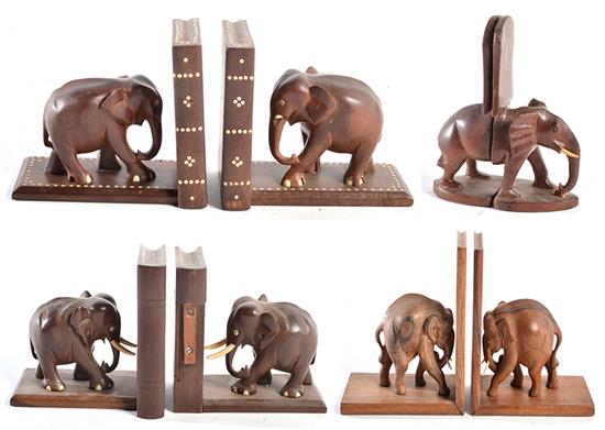 FOUR SETS OF TIMBER BOOKENDS, INCL. WITH BONE INLAY (ONE A/F)