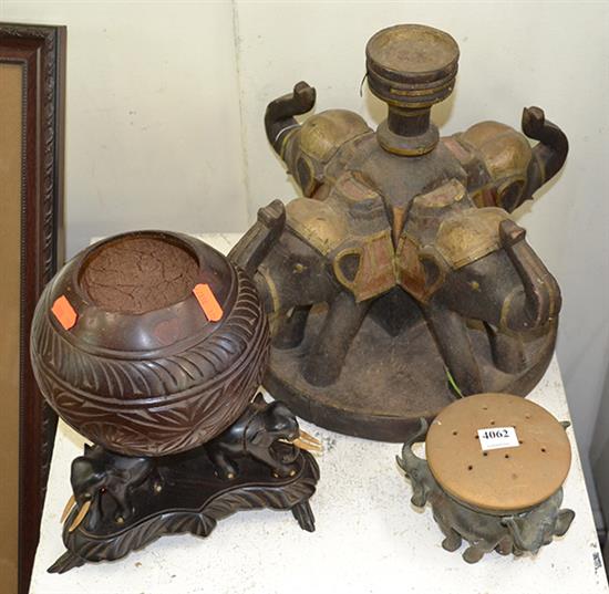 A GROUP OF THREE CENSORS, INCL. BRONZE AND WOOD