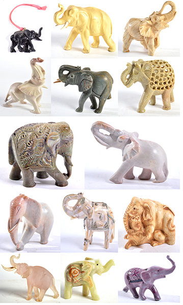 A QUANTITY OF ELEPHANT FIGURES, INCL. COMPOSITE AND MARBLE