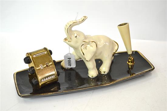 A SMOKERS COMPENDIUM AND A DESK SET, BOTH WITH AN ELEPHANT THEME AND OTHER ASSORTED ITEMS