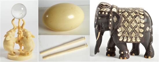 A GROUP OF MISCELLANEOUS ITEMS, INCL. IVORY CHOPSTIKS, AND AN IVORINE AND GLASS CENTREPIECE