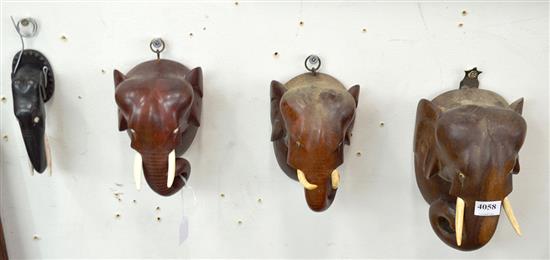 FOUR ELEPHANT THEMED WOODEN WALL PLAQUES WITH BONE DETAIL