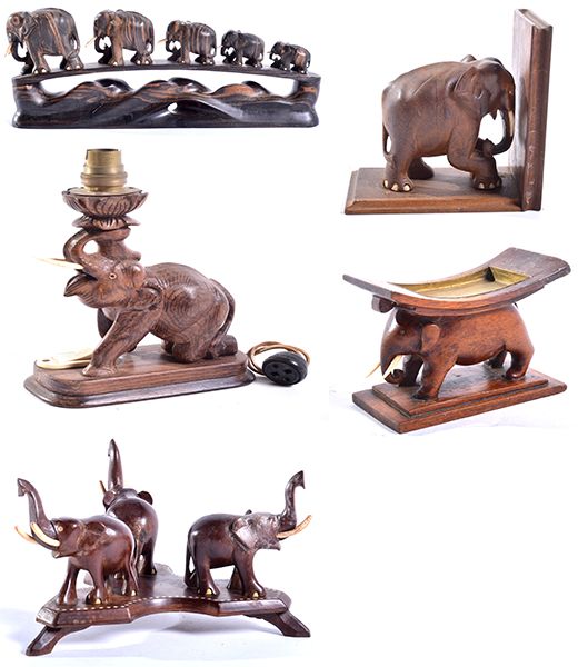 A GROUP OF ASSORTED ITEMS, INCL. WOODEN TABLE LAMP, BOOK END, BRIDGE, ETC.