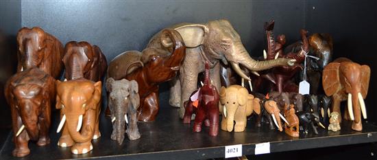 A LARGE GROUP OF WOODEN ELEPHANTS OF VARYING SIZES (SOME LOSSES)