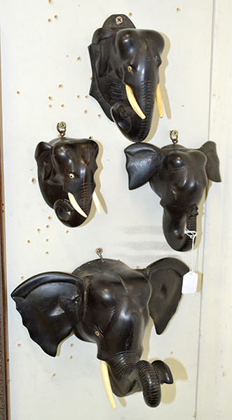 FOUR EBONY AND BONE WALL SCONCES WITH AN ELEPHANT THEME (LOSSES)