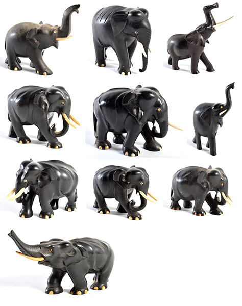 TEN EBONY AND IVORY ELEPHANTS (SOME LOSSES)