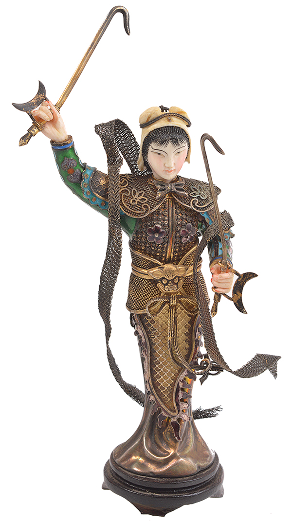 A CHINESE ENAMELLED SILVER GILT FIGURE