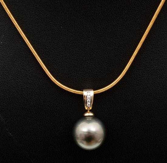A TAHITIAN PEARL AND DIAMOND PENDANT, IN 9CT GOLD TO A DISPLAY CHAIN